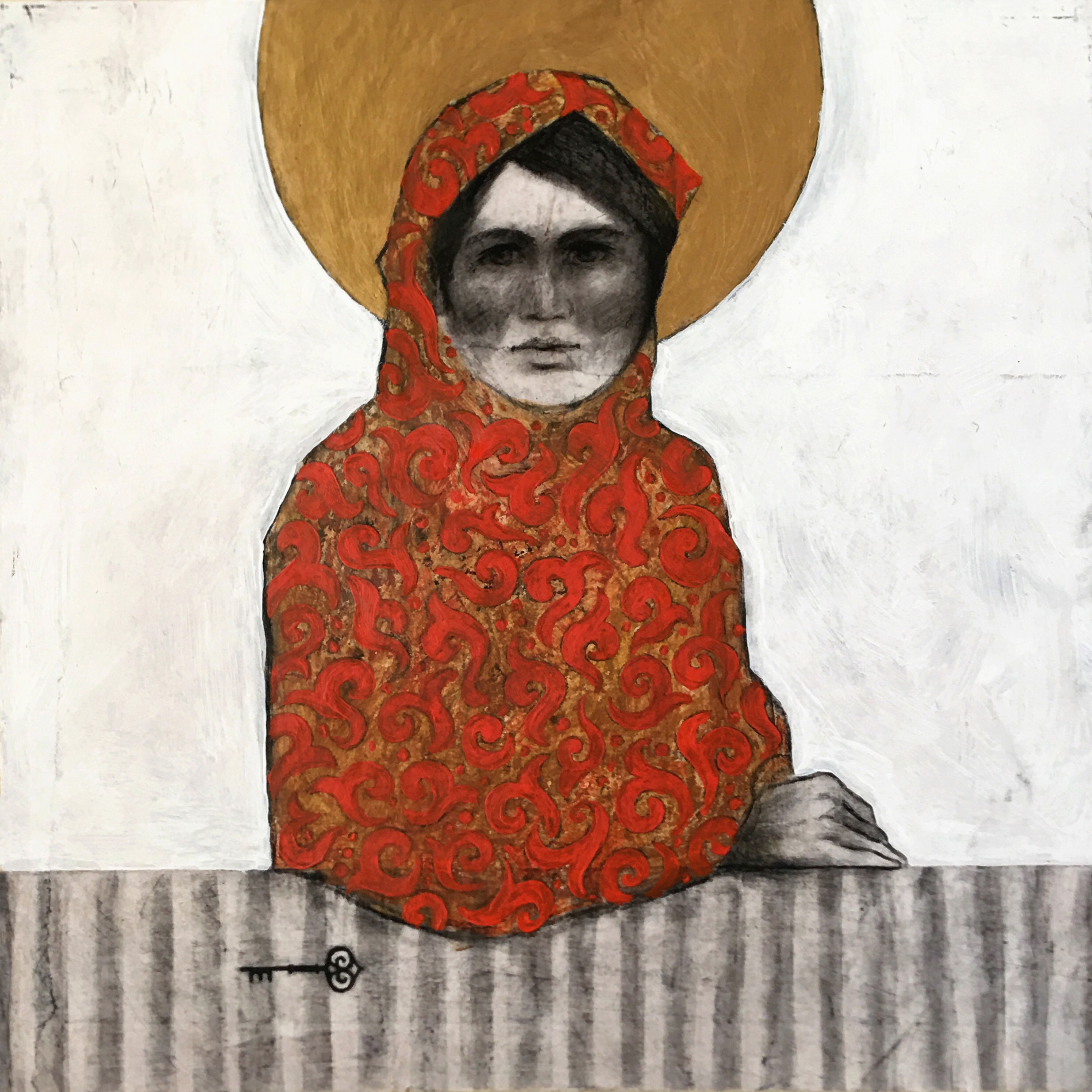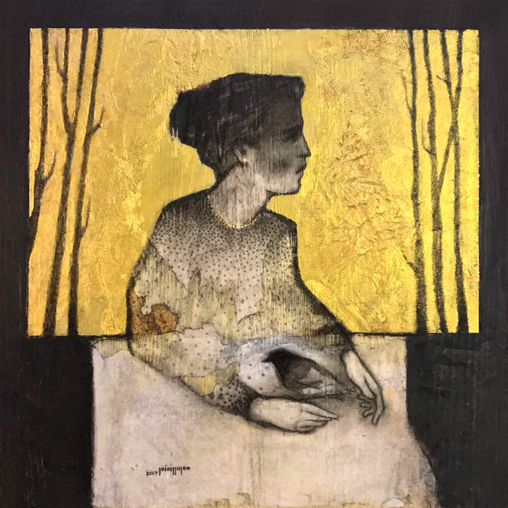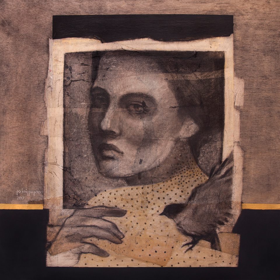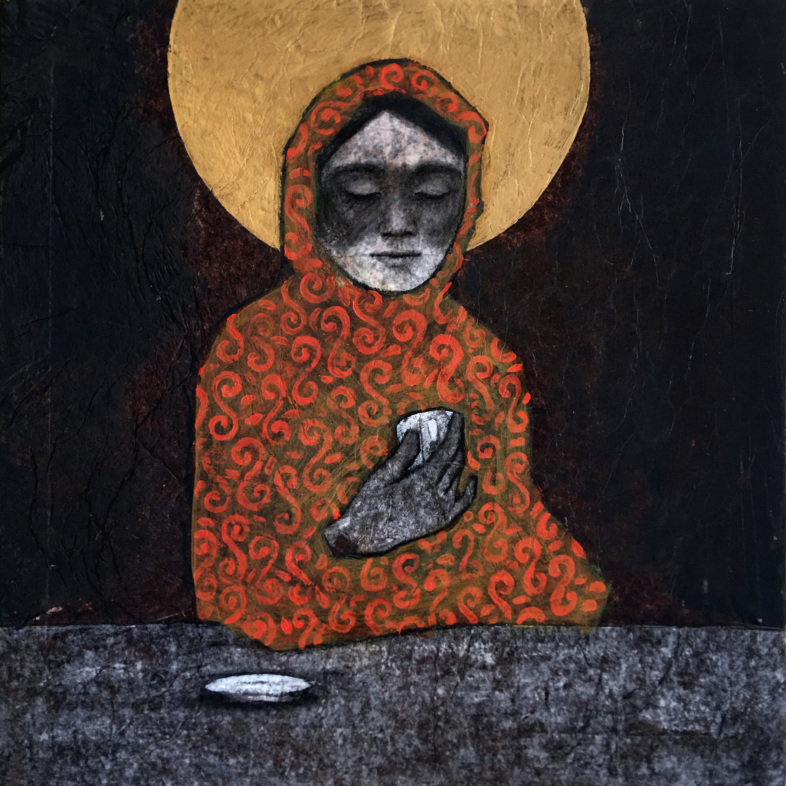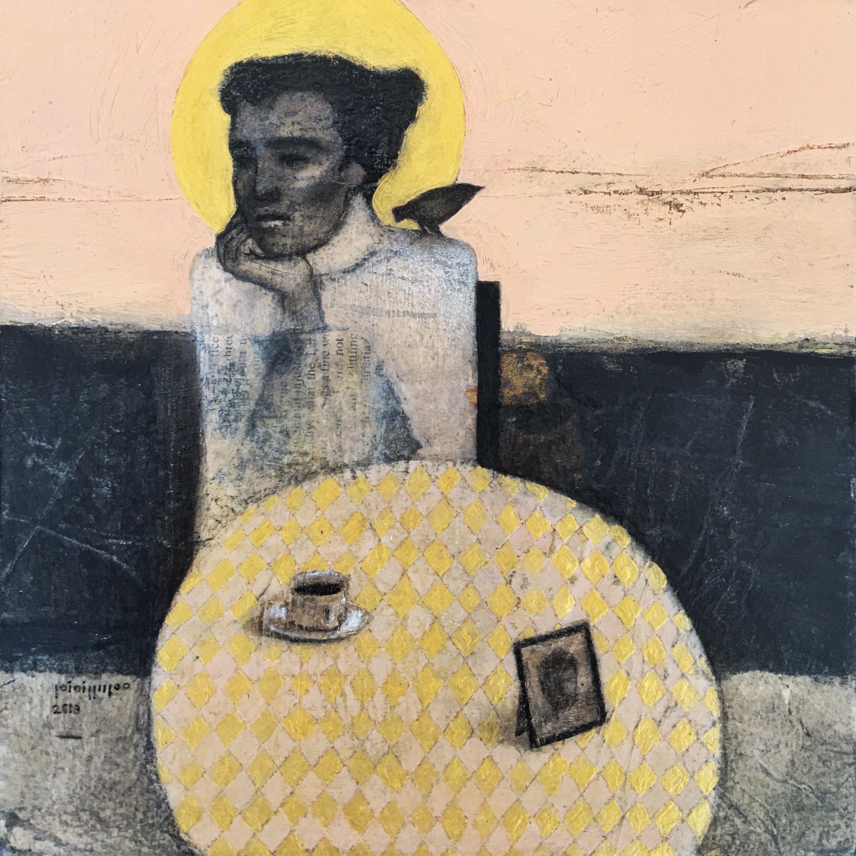 collage and mixed media on wood board